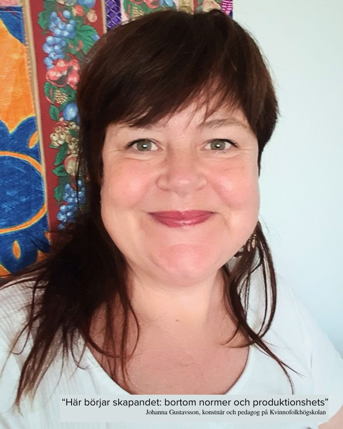 Johanna, som själv arbetat som konstnär i över tio år, undervisar också i feministiska studier på skolan. Hon beskriver arbetet på Kvinnofolkhögskolan som en möjlighet att formulera en verklighet bortom förtryckande normer och fascism.